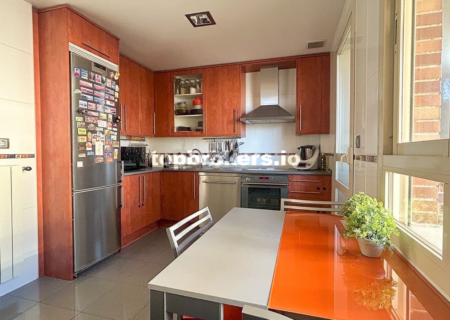 La planta principal dispone de salón con acceso a una terraza, distribuidor con zapatero empotrado que da acceso a tres dormitorios (uno con terraza), el principal en suite con vestidor y dos baños completos. Cocina totalmente equipada con placa de inducción y horno de vapor. Tendedero independiente con lavadora, fregadero y zona de almacenamiento.