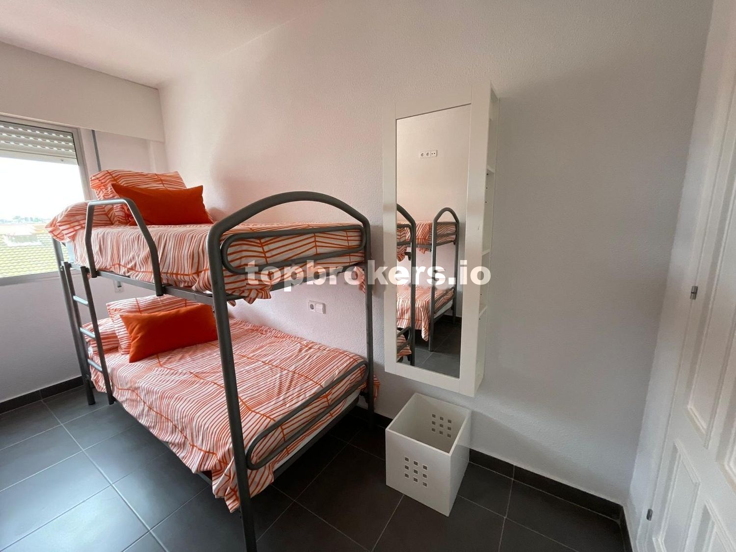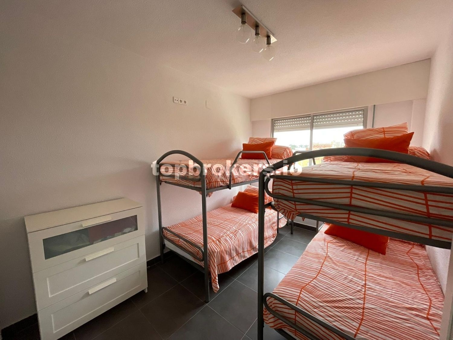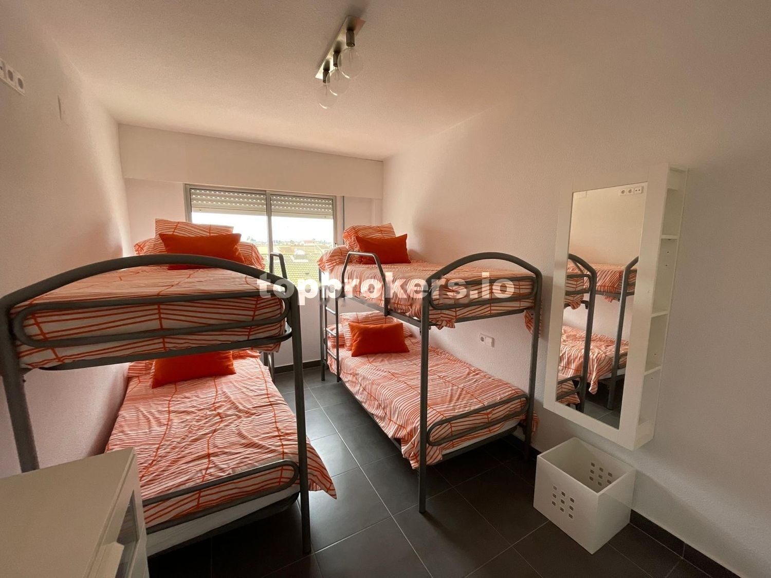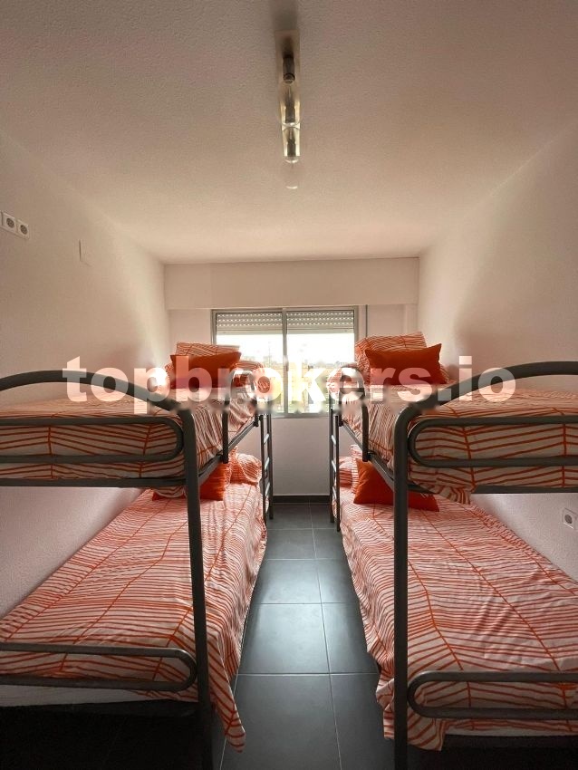 Apartamento singular con reforma integral hace 6 años, cocina amplia con lavadero integrado y totalmente equipada incluyendo electrodomésticos, salón muy bien iluminado que da acceso a un balcón, contiene zona de mesa/comedor y zona sofá/tv, cruzando una puerta de diseño de cristal damos a la zona distribuidor donde a la derecha se encuentra el dormitorio principal, de matrimonio, amplió con gran ventanal, armario empotrado. A la izquierda segundo dormitorio con dos literas y armario empotrado. Además, un cuarto de baño entre ambas habitaciones que incluye ducha, wc, bidet y mueble con lavabo y espejo completo.