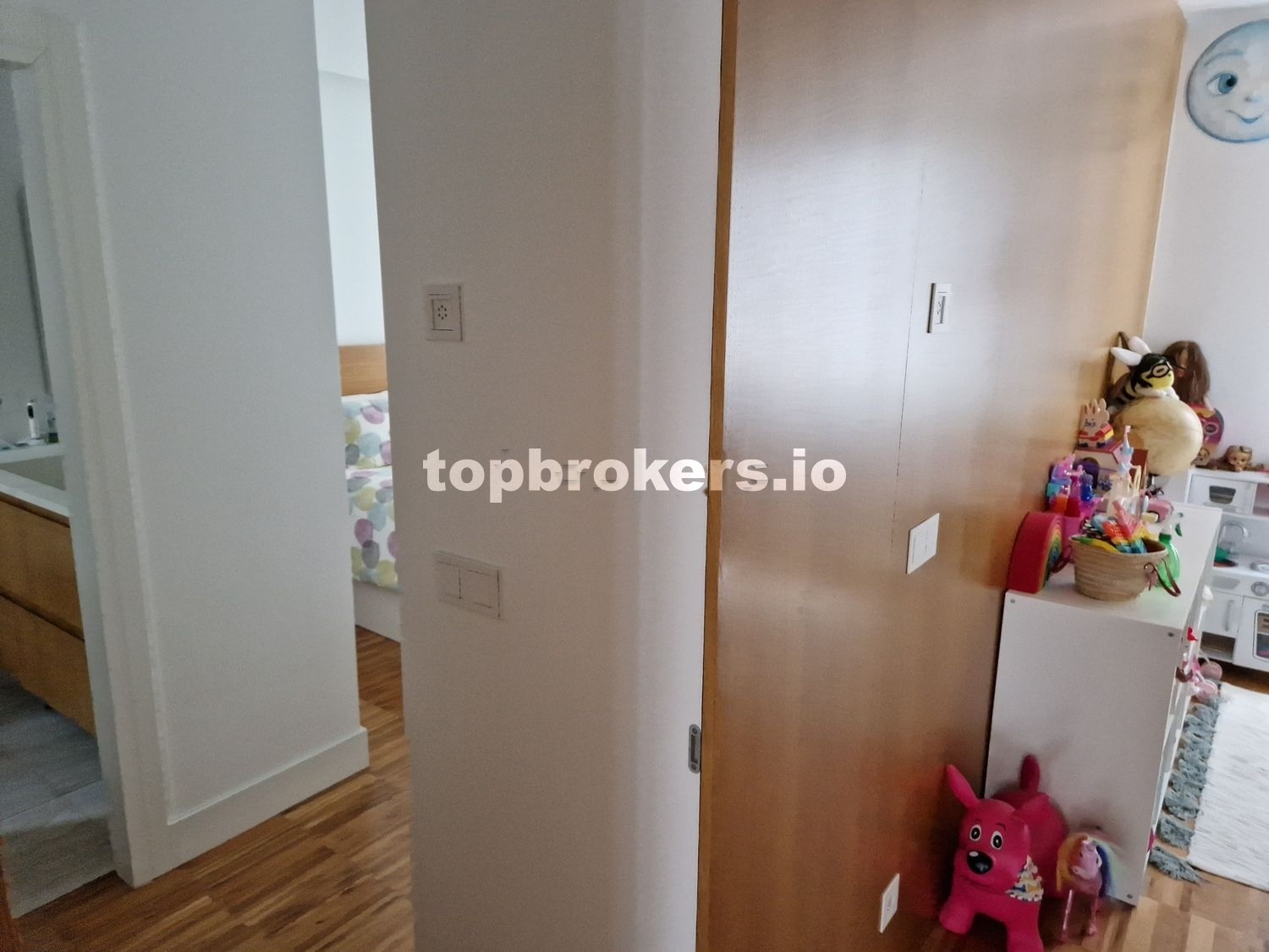 A través de un pasillo accedemos a la zona de noche, donde hay una puerta de suelo a techo de separacion.