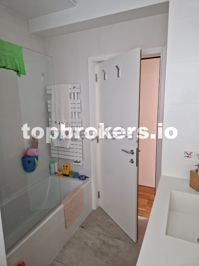 Un baño da servicio a dos dormitorios, donde hay una bañera y griferia termostatica roca.